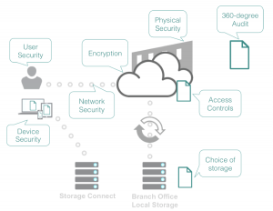 Egnyte bakes security right into the files’ lifecycle to ensure IT has full control over all corporate data, users and devices. The image below illustrates this lifecycle and various controls that Egnyte provides at different stages.