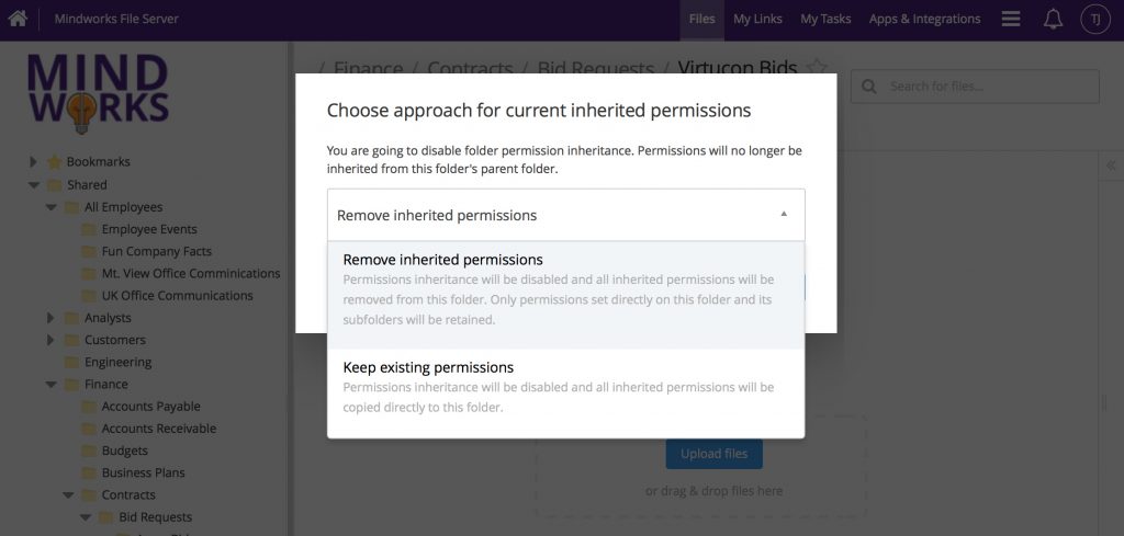 Regardless of your company’s size and structure, Egnyte provides options for setting folder permissions in three ways; inherited, inherited with manual override, and non-inherited.