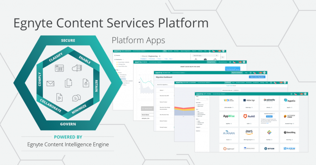 The Egnyte CSP integrates seamlessly with existing business applications, directories, and repositories, allowing organizations to build cohesive enterprise ecosystems and quickly deploy and manage content-rich workflows that help our customers grow and transform their business.
