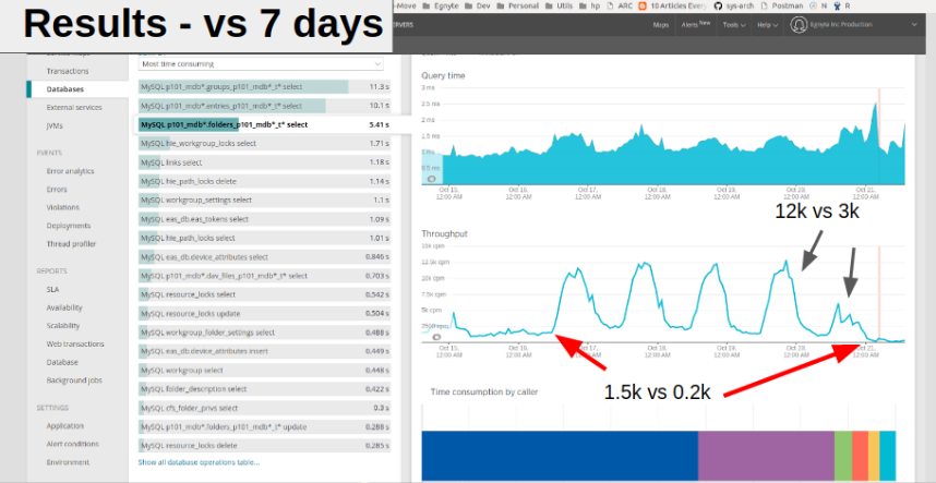 As a side effect of these improvements, the system became faster and we found that the throughput increased by 15% without adding many new resources.Taking the time to focus on the few tasks that can result in maximum gain is critical for improving complex systems like Egnyte Connect. Without this focus, teams can quickly get bogged down in the myriad details of the day-to-day activity.