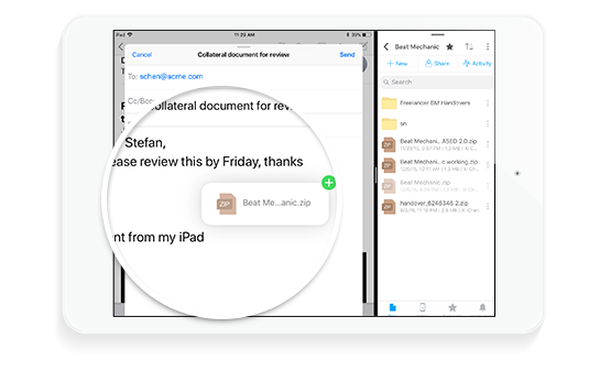 Now when you open up the Egnyte app on an iPad in split screen, you can drag & drop files from the app to the Mail app and they’ll be added as file attachments.