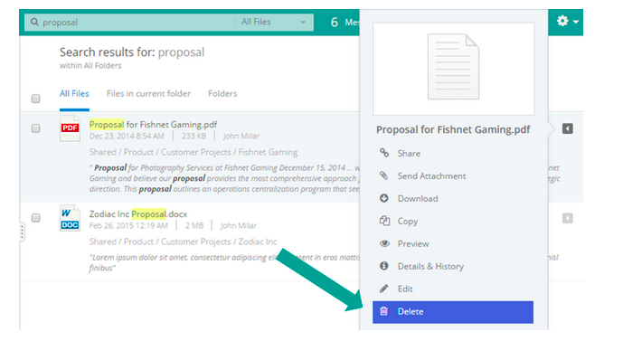 Eliminate the Clutter with Streamlined DeletionWhen searching keywords for files across multiple folders, you can now delete from this view to clean up the clutter. This functionality will help when trying to find multiple copies of files that are stored across numerous folders. Nothing is worse than working off of the wrong, out-dated file! Clear out the old one and just work with the new one. Don’t worry — the new feature will still keep owner file permissions to avoid accidental deletion.