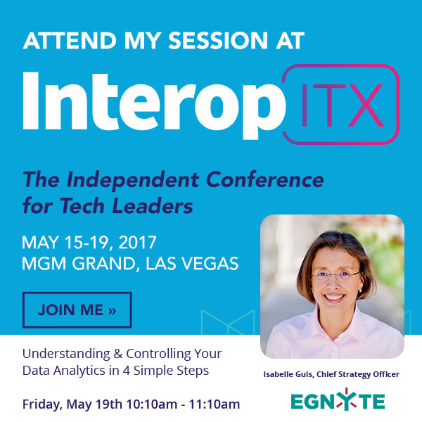 Understanding & Controlling Your Data Analytics in 5 Simple StepsSpeaker: Isabelle Guis  |  Chief Strategy Officer, EgnyteLocation: Room 113Date: Friday, May 19Time: 10:10am - 11:10amFormat: Conference SessionTrack: Data & Analyticshttp://www.goodhousekeeping.co.uk/news/guess-how-many-hours-a-week-they-spent-cleaning-in-the-1950s