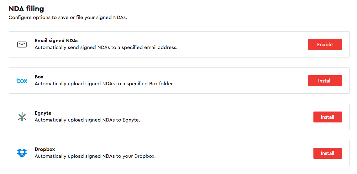 Once you connect your Egnyte account and log in, you can designate a folder in Egnyte to be the new home for all your visitor NDAs. Once you click save, you’re all set! Every visitor’s NDA will be automatically filed and easily accessible.