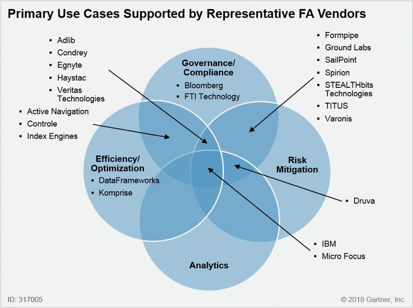 A complimentary copy of Gartner’s 2018 File Analysis Market Guide can be accessed here.Market Guide for File Analysis Software, 27 March 2018, Alan Dayley, Guido De Simoni, Julian Tirsu, Garth Landers, Marc-Antoine Meunier"Gartner does not endorse any vendor, product or service depicted in its research publications, and does not advise technology users to select only those vendors with the highest ratings or other designation. Gartner research publications consist of the opinions of Gartner's research organization and should not be construed as statements of fact. Gartner disclaims all warranties, expressed or implied, with respect to this research, including any warranties of merchantability or fitness for a particular purpose."