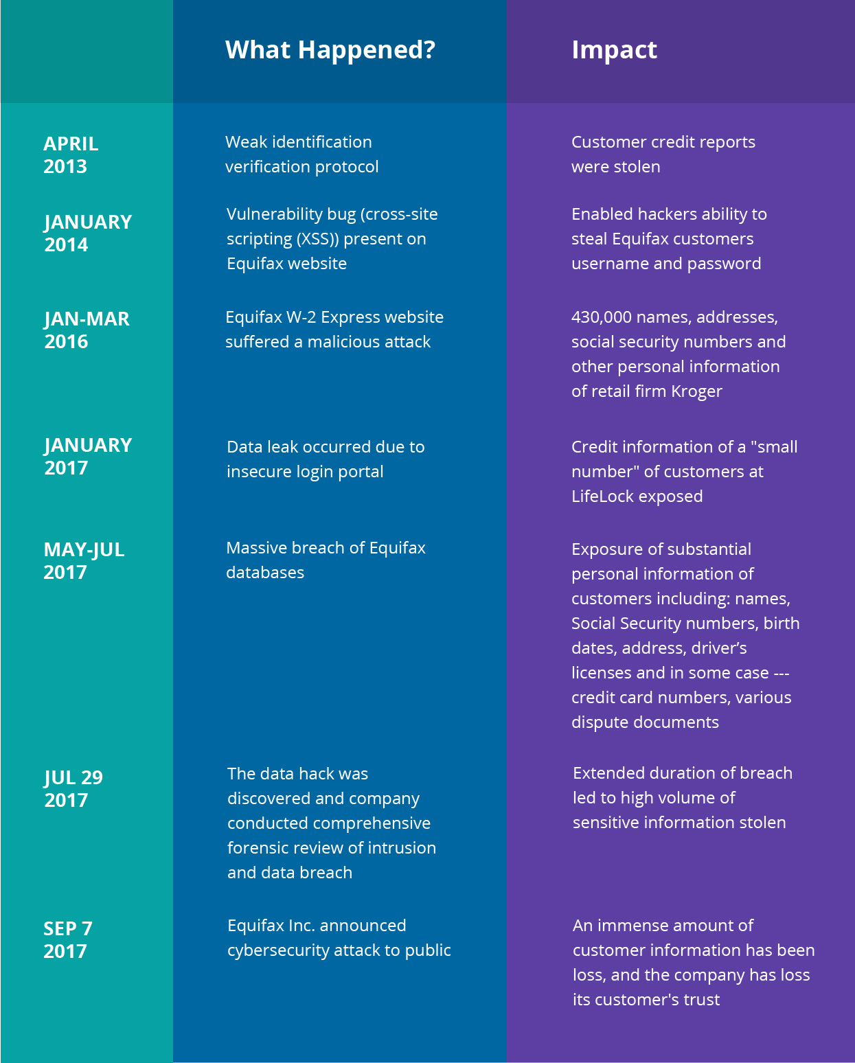 Top credit-reporting firm Equifax has been facing criticism for its latest data breach. 143 million people were affected, equating to nearly half of the United States population — making it one of the biggest recorded hacks in history. [Background: Equifax handles a tremendous amount of sensitive data of more than 820 million consumers and more than 91 million businesses worldwide, and its database includes employee data contributed from more than 7,100 employers, according to its website.]Customers and cybersecurity experts are reproving the company’s response to the attack and overall security measures for the initial exposure.The storm of criticism makes you wonder what really happened that led to such a serious data breach and could your business potentially be the victim of such a malicious attack?