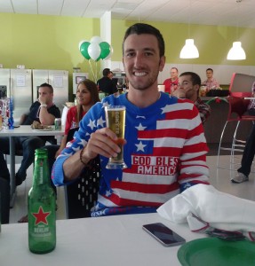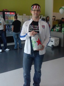 We decorated the entire office with plenty of red, white, and blue beads, streamers, and balloons. We also had an awesome breakfast spread and plenty of beverages - juice, mimosas, and, of course, plenty of Heineken. We even got a very cool cake made with a special “Thank You” message to our new friends at Heineken USA! To top it all off, we raffled off some pretty sweet USA soccer gear to our employees!