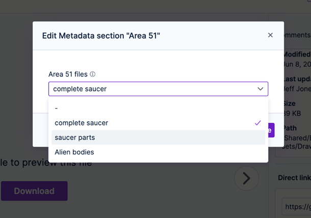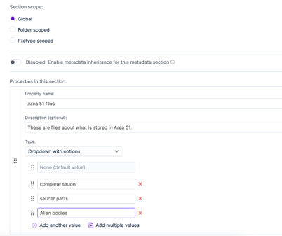 For user-defined metadata, users can create their own metadata schema and then associate metadata with files. To start with, customers can create new metadata types and populate them with allowable fields as needed using the Egnyte tool.