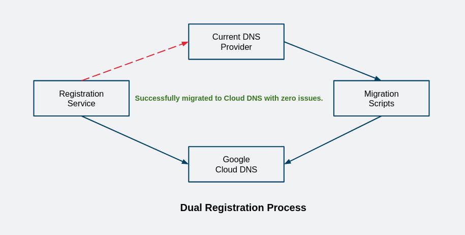 Automation: Automation was a cornerstone of the migration strategy. It encompassed updates to the domain registration service to add records in both the existing provider and Cloud DNS, migration scripts, and validation and verification scripts.