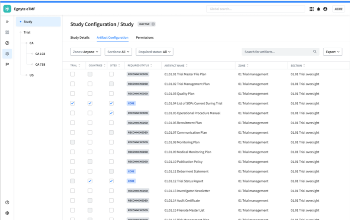 - Apply submission rules to specify which are relevant at the trial, country, or site level