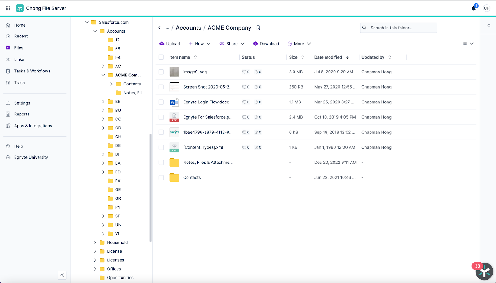 - Wider access footprint. All employees with access to the Egnyte repository also have access to the files, not just those with a Salesforce license. This means that more expensive Salesforce licenses can be reserved for your sales team, while supporting employees from finance, legal, service, and marketing departments can use the lower-cost Egnyte option.