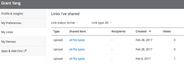Work smarter, not harder. We all want to shave off hours during the workweek, but being efficient can be a challenge. With the new My Links feature in Egnyte, it doesn’t have to be. Now you can seize the opportunity to quickly review and manage all of the links that you have shared and received in the new My Links tab. The My Links features is part of a series of improvements to display features critical to the workflow processes more prominently in the UI.  Note: this feature is only available to domains that have file sharing turned on and available to their users. Links I've SharedLinks I've Received