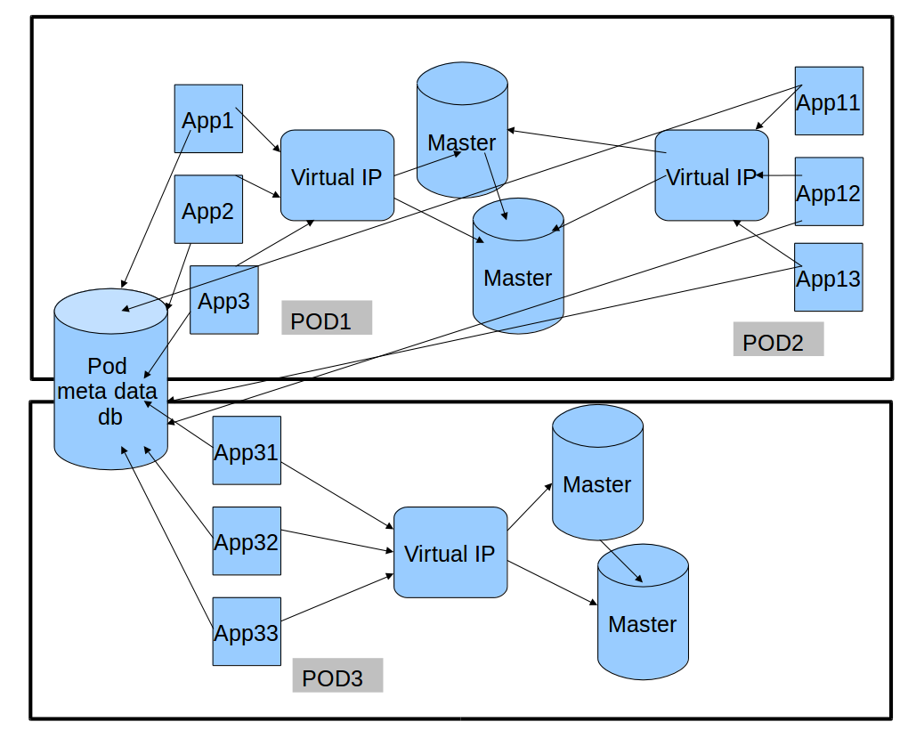 - We can add more pods or more Mysql hosts to one pod if it has a capacity problem in one component.