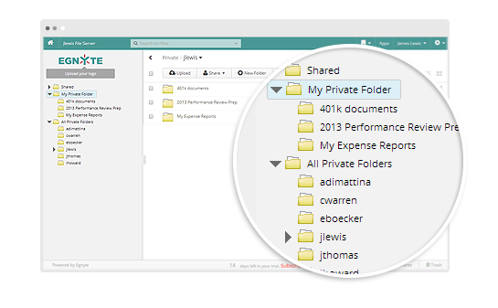 My Private Folder: A Power User’s Private folder will now appear as "My Private Folder." An Admin User’s personal Private folder will appear by itself in “My Private Folder,” while a master folder below it contains the private folders of all the other users in the company’s account. Desktop Sync and Storage Sync will still show the full file path and sync will not be affected.