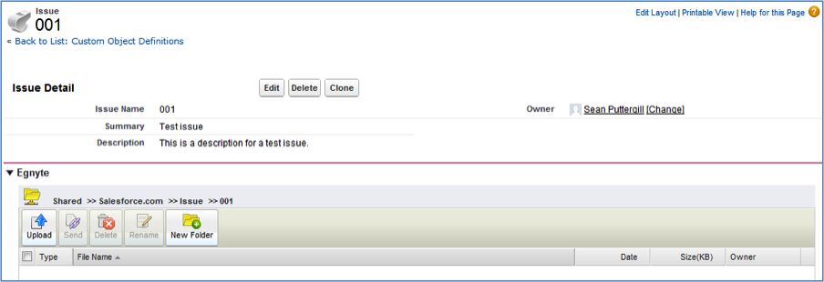 The latest release of the Egnyte Salesforce integration allows you to upload files directly to custom objects. Previously, Egnyte only supported uploading files to certain standard objects.Uploading files to custom objects provides the ability to track and share files related to company records beyond the following standard Salesforce objects - Contacts, Leads, Opportunities, and Accounts. For example, if you have created a custom object for your Products, you can upload technical diagrams associated with specific parts of those products.Folders will be created for each record, and files added to the records will be saved to those folders. Anyone with access to a custom record can view files associated with that record.