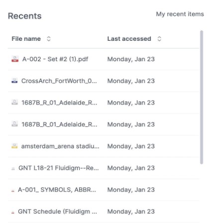 The Recents widget on the project homepage allows users to instantly access recent files without having to search through the folder structure - essential for quickly finding that important file you just used. You can sort files by name or when it was last accessed, plus open them directly from a short list for maximum efficiency.