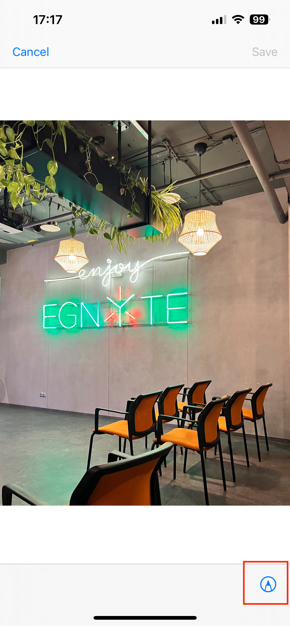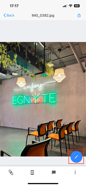 Users can access the image markup tool straight from the file preview screen. Just tap on the vibrant blue color edit button, and on the next screen, select the markups icon.