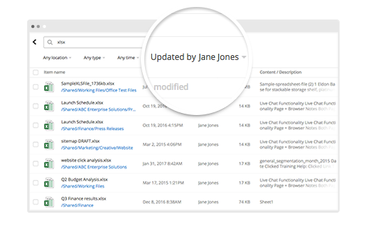 Quickly find files updated by a collaborator with the new option on the advanced search filter “Updated by” to search by a "Specific person".