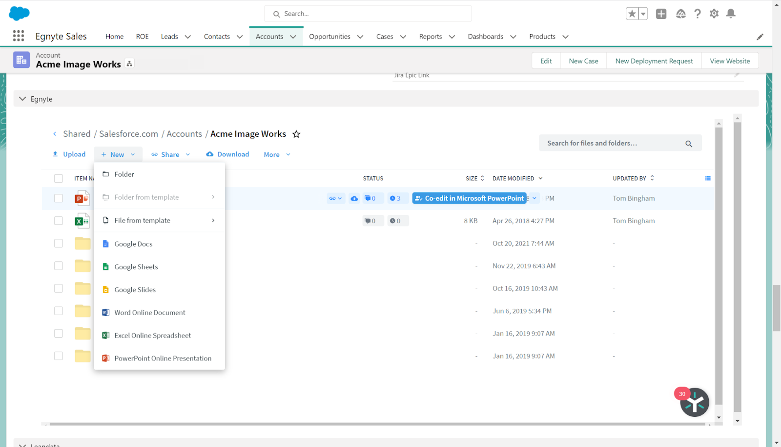 - Securely access all Salesforce data from Egnyte, including presentations, contracts, or proposals