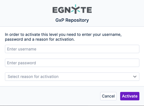 To activate the study or any of the filing levels in the study hierarchy, choose that item in the hierarchy and use the dropdown next to its name to change the status to active.  The system will prompt you to provide a 21 CFR Part 11 compliant digital signature that will be tracked in the eTMF audit report.