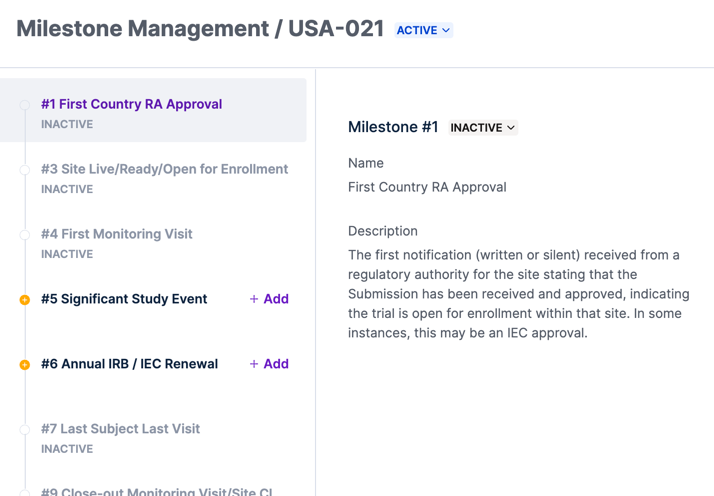 The study, trial, countries, and sites are initially created in an inactive state.  When one of these filing levels is inactive, it isn’t available to your end users and they won’t be able to upload documents or view status.  This gives you an opportunity to set everything up fully before providing access to your users.