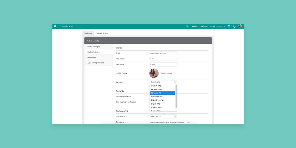 Support for three new languages in the Web UI: With this update, three new languages are available: Simplified Chinese, Russian, and Turkish. When localization is enabled for your domain, users will be able to select the new languages, as well as existing ones (German and Canadian French) for the Web UI. Admins will be able to set the new default languages for users.