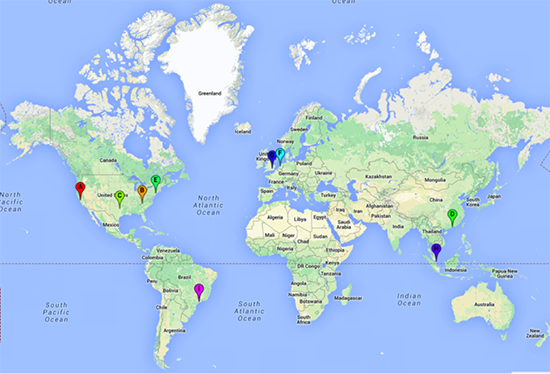 1. U.S. Central2. U.S. East3. U.S. West4. EU5. South America6. APAC