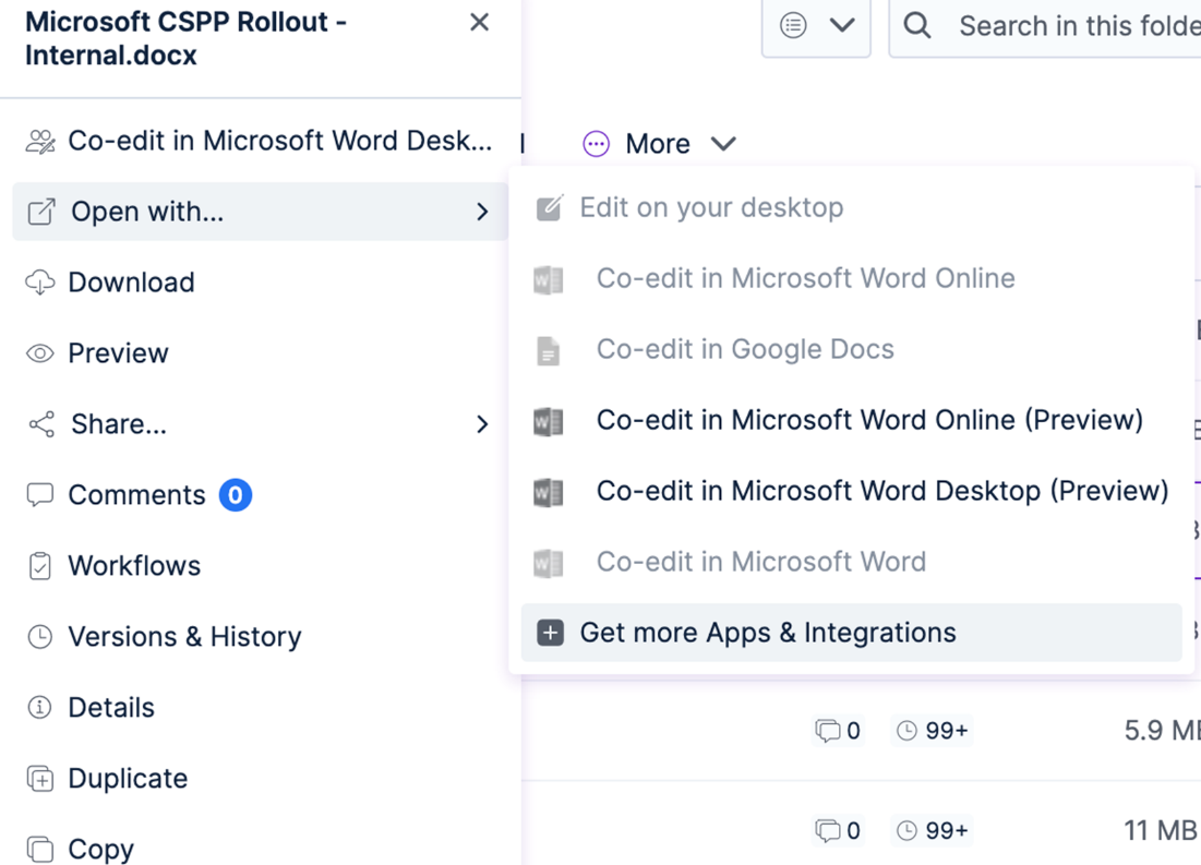 As part of our ongoing commitment to providing a seamless co-editing experience to Egnyte users, we have introduced new enhancements that enable Windows and Mac users to open any Microsoft Office-supported file such as Word, Excel, and PowerPoint, and start or join a co-editing session directly from the Microsoft Office App. Users can also co-edit in real time using the Egnyte Desktop, Online or Mobile versions.
