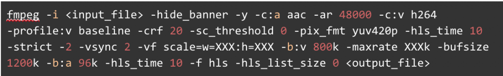 To transcode video to HLS, we chose FFmpeg. FFmpeg is a collection of libraries and tools to process multimedia content such as audio, video, subtitles and related metadata. FFmpeg is by far the best free software available for transcoding videos and it has very good HLS support. FFmpeg can natively create the various HLS segments at different resolutions.