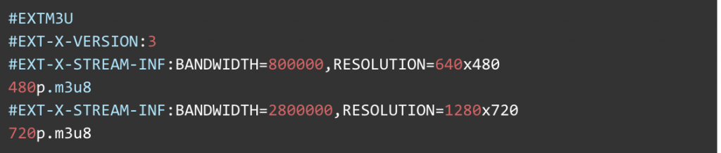 - <resolution>.m3u8: For each resolution supported by Egnyte and listed in stream.m3u8, for example, 640x480, a 480p.m3u8 is generated which is a playlist for the specific resolution.