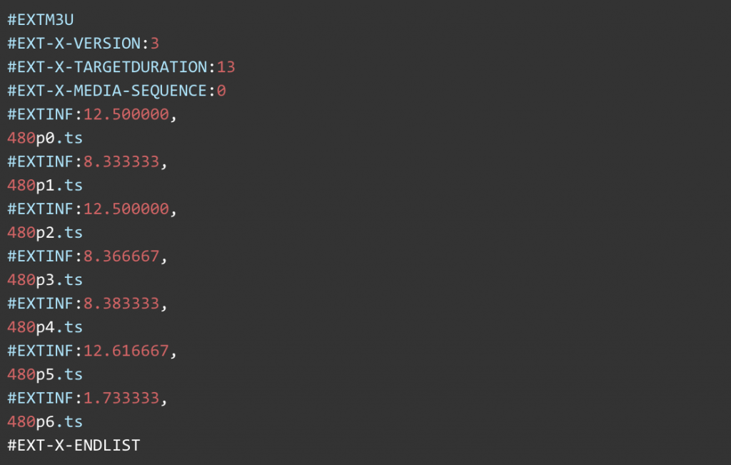 - Video Segments: smaller fixed time video segments for each of the resolution supported. Unlike *.m3u8 files, these are actually video files and not metadata files.