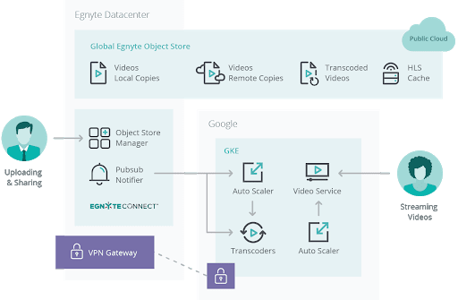 Our first preference was to leverage a serverless architecture for deploying video transcoders. We liked the idea that we could build this on Cloud Functions, scaling automatically without worrying about backlog and load spikes. However, we soon realized that it was too early to leverage these services at scale. Video transcoding is a CPU-intensive operation and needs specific hardware like dedicated CPUs (or even GPUs) with enough memory and native ffmpeg installed on it. It was challenging to build this on serverless, and we determined that Kubernetes suited us better, so we created Alpine docker containers of FFmpeg + Python and deployed these within Kubernetes. Plus, since we already used Kubernetes within Egnyte there was a smaller learning curve.