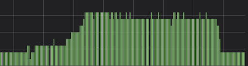 From a transcoding perspective, the key metric to measure is the backlog, as this directly affects our users. We monitor the number of messages outstanding in the pubsub topic. At any point of time, if there are too many messages in the queue waiting to be processed, the autoscaler adds more transcoders. As seen below, as the number of outstanding messages increases, we increase the number of transcoders. As the backlog comes down, we reduce the transcoders.
