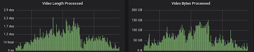 We monitor videos processed as well to understand the traffic patterns and costs.