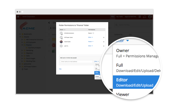 The drop down in the Folder Permissions dialog now has short descriptions for each permissions level to better facilitate assigning the appropriate permissions level.