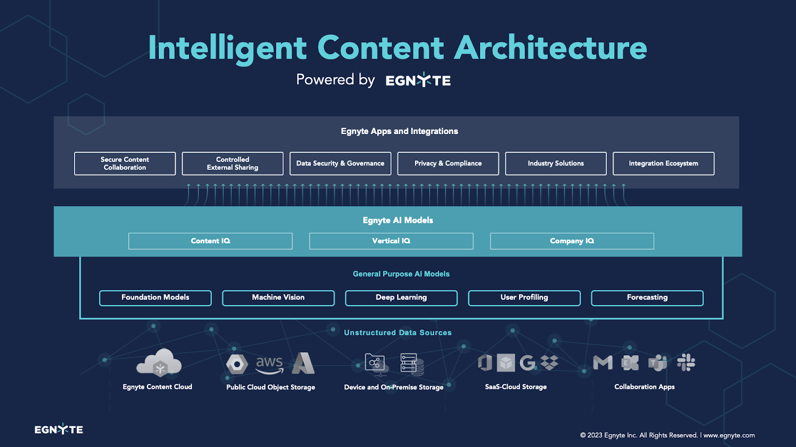 Egnyte embeds AI into a variety of content-related workflows – from file administration to document search and discovery, and even data compliance. These have been purposely designed to be simple to use while hiding the complex and intelligent layers underneath that enable them. To power these capabilities, Egnyte has developed an architecture that must: