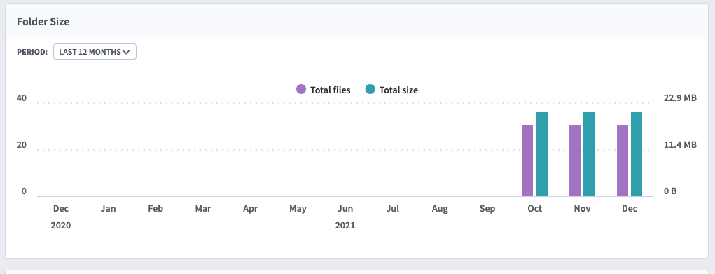 You will also see a bar chart with folder size broken out by month, so you can see active folders. You can see a bar chart of files by age as well.