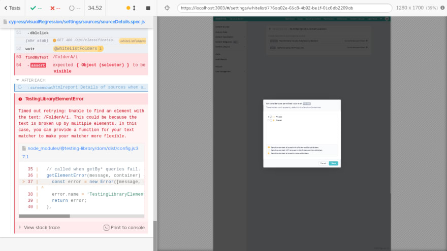 We use a lot of tools in our tests. For unit testing, we use [jest](https://jestjs.io/). In E2E, we use [py.test](https://docs.pytest.org/en/stable/) with webDriver bindings. We also have UI tests that check our app on a higher level (interactions between components, pages, or views). Recently we introduced another test suite - VRT (Visual Regression Tests). The last two (UI and VRT) are based on [cypress.io](https://www.cypress.io/). It is an excellent tool for writing tests - from unit to full E2E.The backend of our app is very complicated, and it is difficult to set up a local environment. Because of that, for UI and VRT tests, we use a killer feature from cypress.io - network stubbing. Cypress can plug in between our app and a network request giving us a possibility to decide about the response from the API endpoint.More info about stub responses can be found in official Cypress documentation.