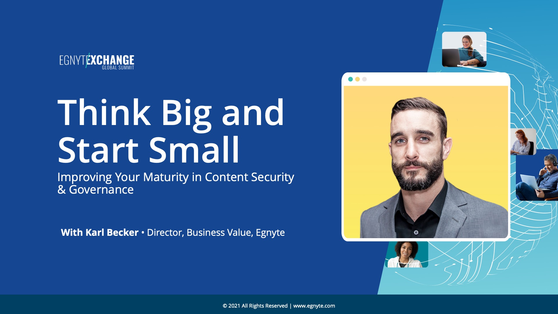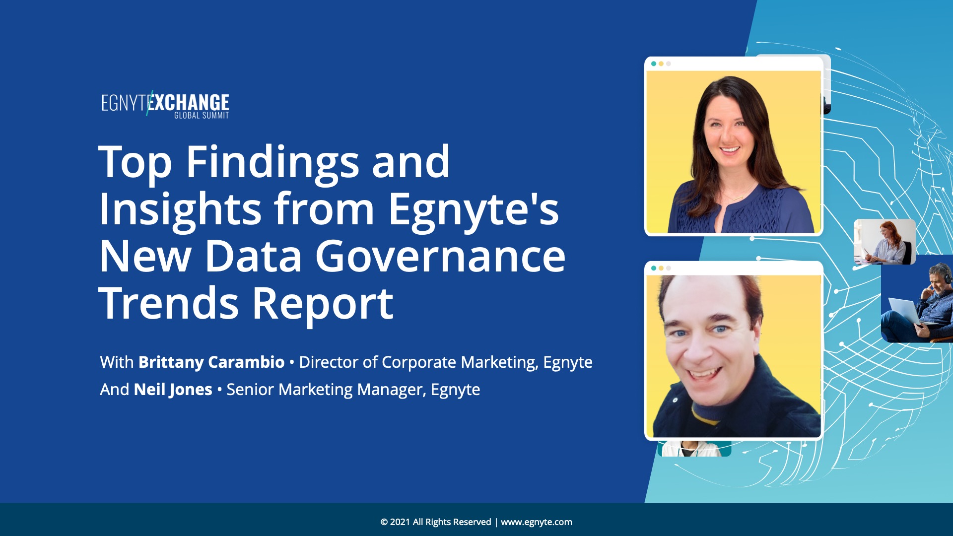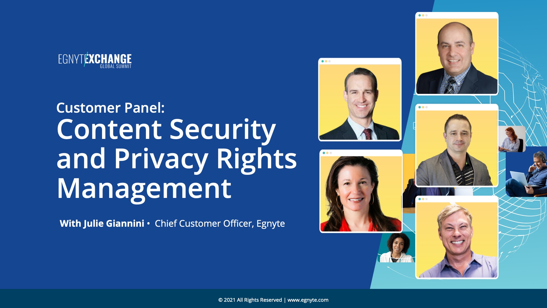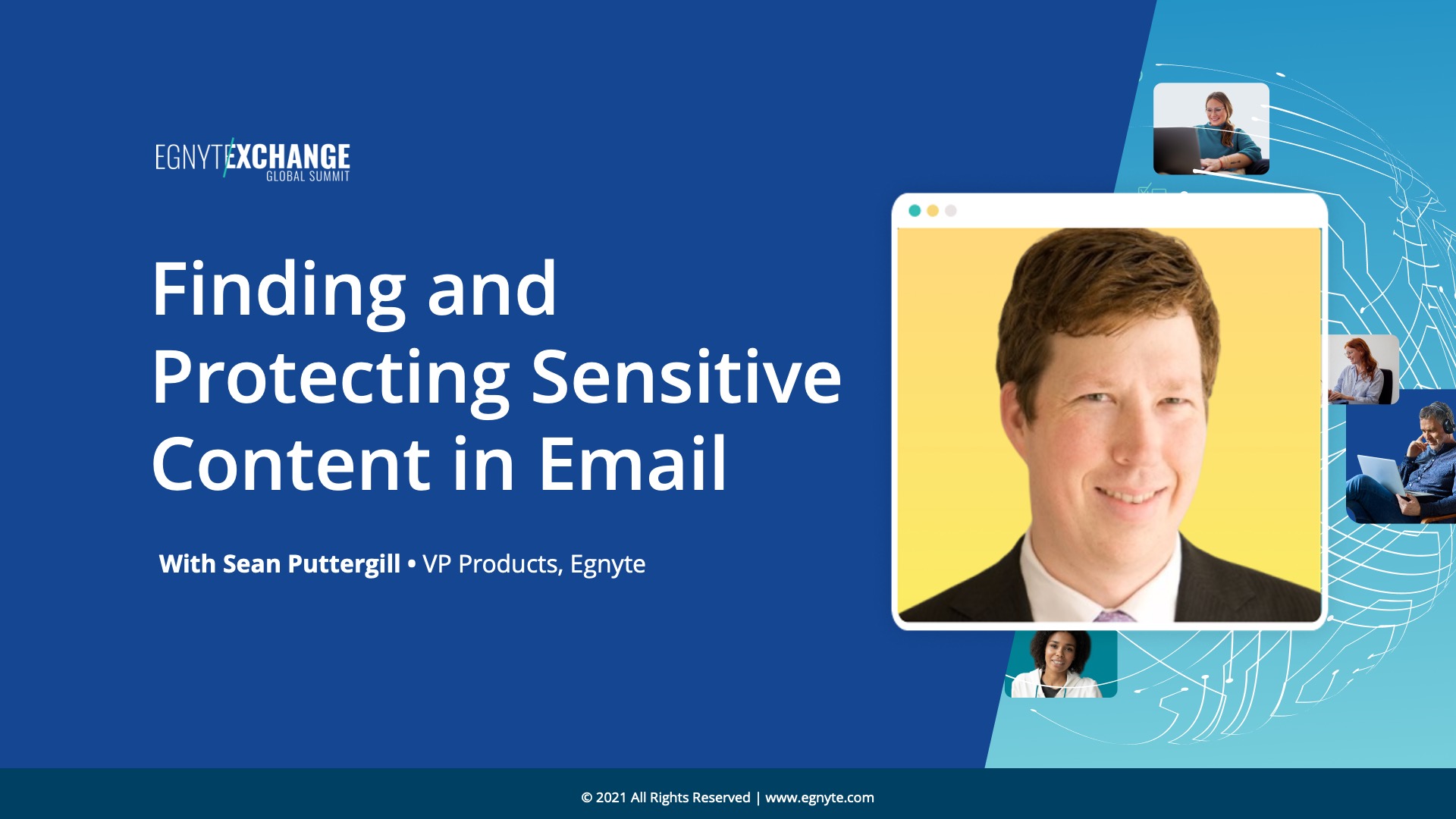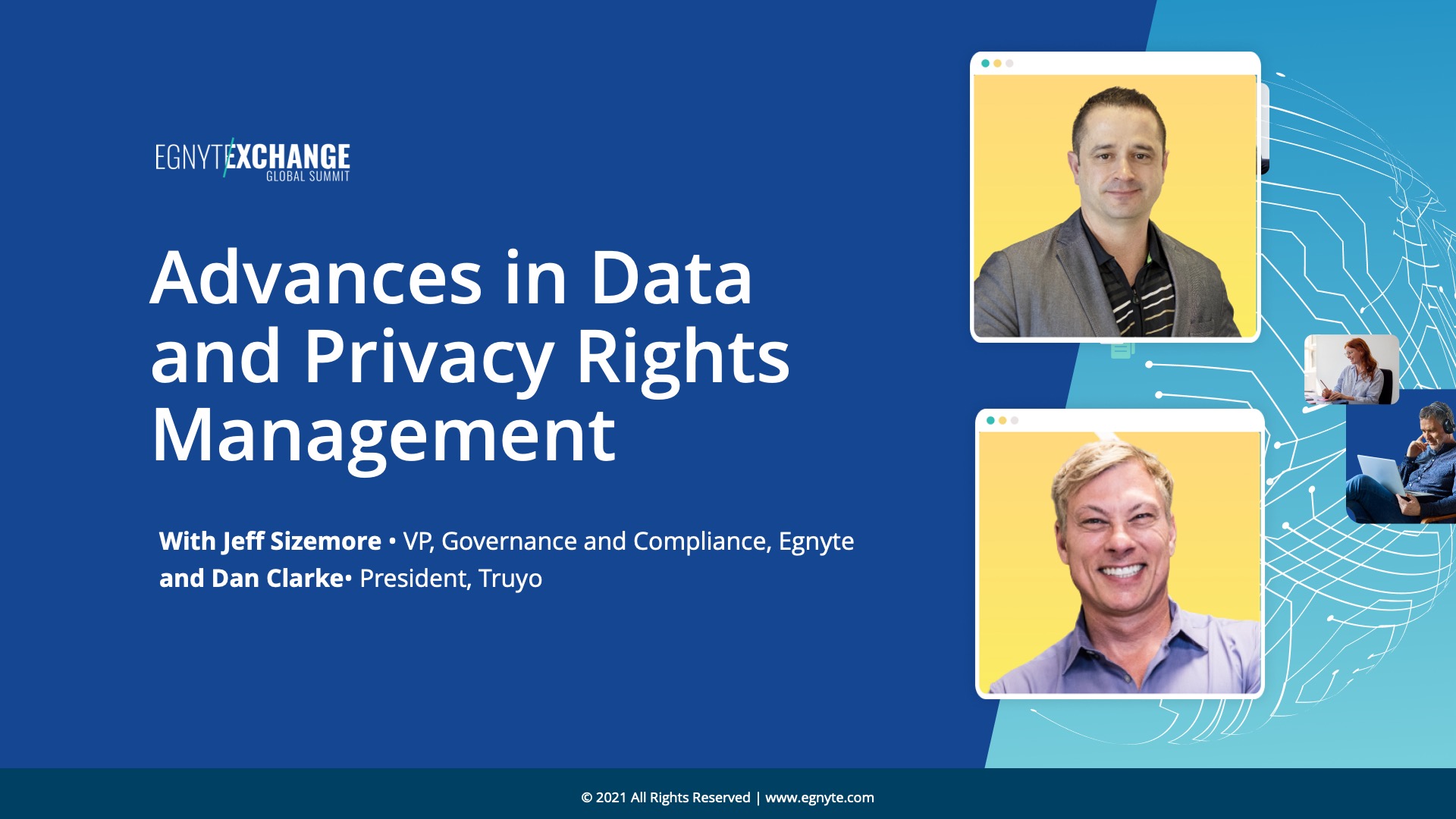 Hear from customers, industry experts and executives regarding the challenges of discovering, classifying, and securing sensitive data. They'll also talk about adhering to global and federal compliance and privacy mandates, and properly governing data from disparate sources in a hybrid work model. This session will include a discussion about the benefits of Truyo and Egnyte’s integration and why privacy and content security are becoming critical priorities for organizations.