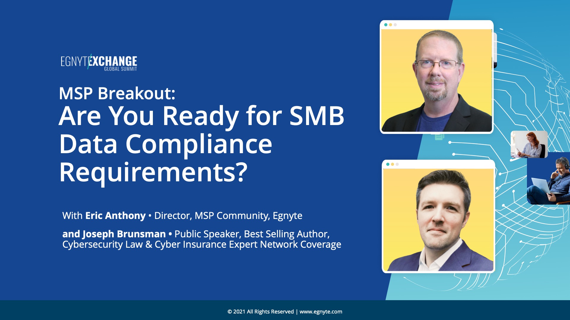 Join Egnyte's Eric Anthony and Dave Sobel, industry expert and host of the Business of Tech podcast, along with two MSPs to discuss how current risks and the opportunity to protect clients are deeply entwined. Learn what your peers are doing to initiate those conversations, protect their clients, and create additional streams of revenue for their business.
