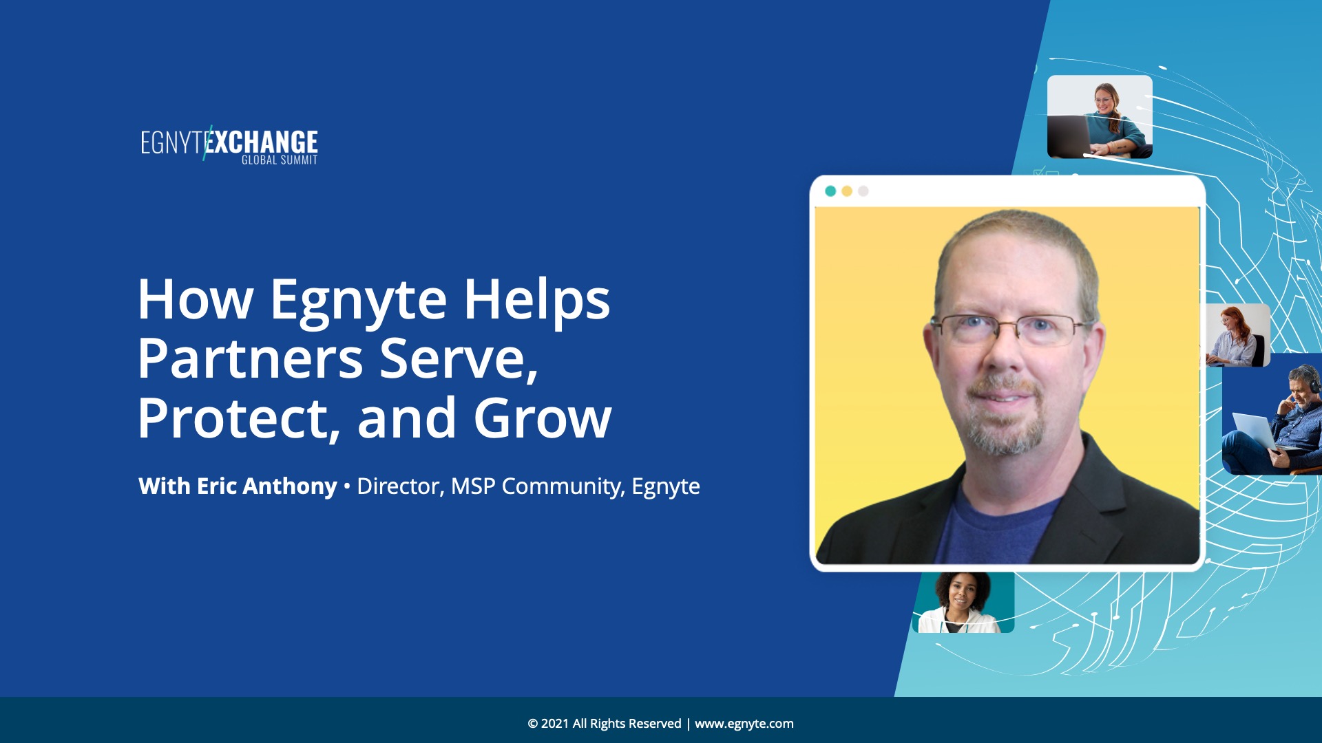 Join us to talk about how Egnyte’s MSP partner program helps service providers sell, deploy, and manage solutions to protect clients’ unstructured data. We will discuss the new and expanding partner portal where partners can find an array of resources like guided training and marketing materials. We will also discuss some new and exciting projects underway to facilitate Egnyte partnering with MSPs for growth and success.