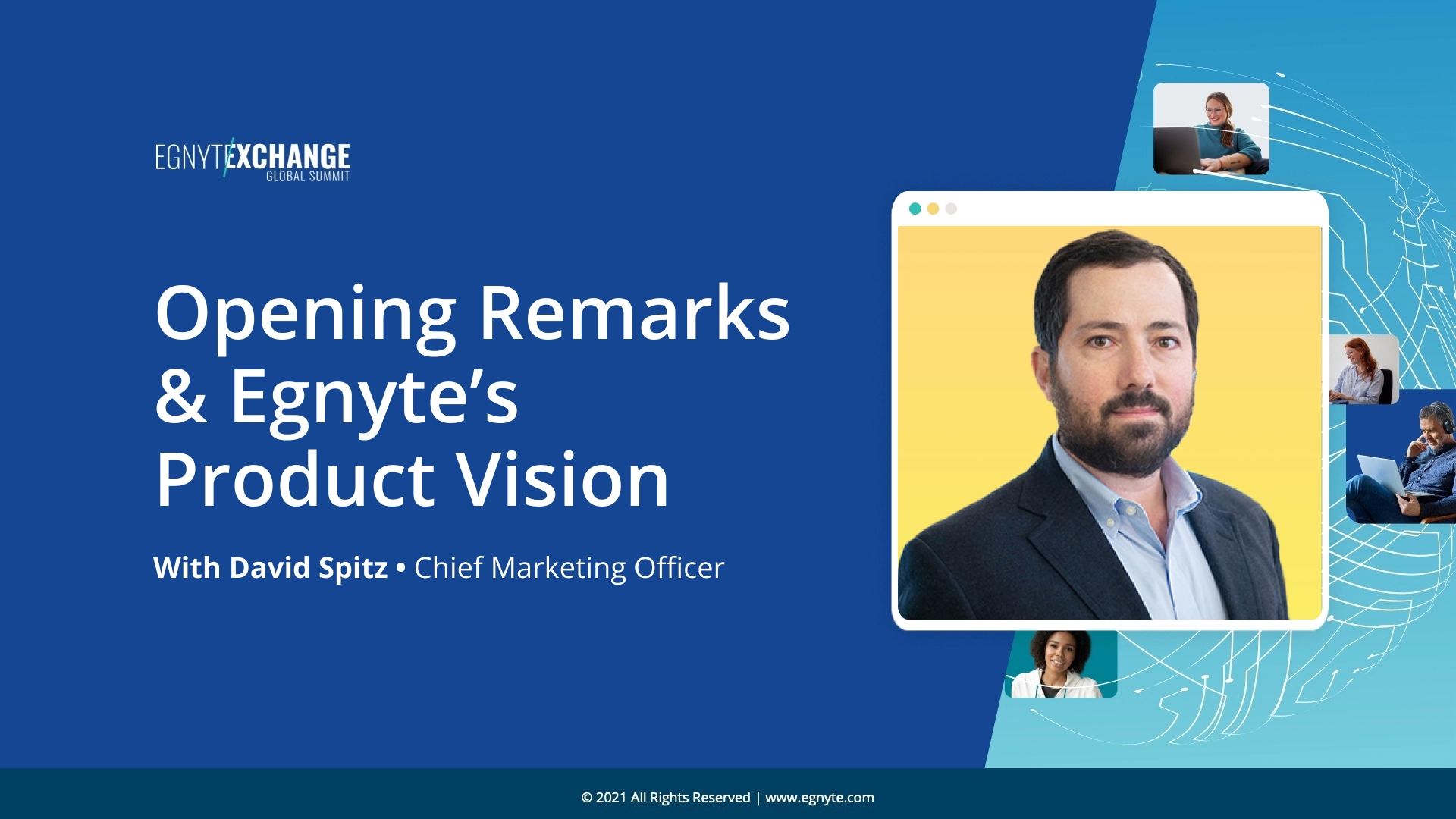 Kick off today's event with opening remarks and an introduction into how Egnyte is helping companies maintain optimal balance between content risk and value, and innovating around three foundational principles of control simplicity, collective responsibility and defense in depth.