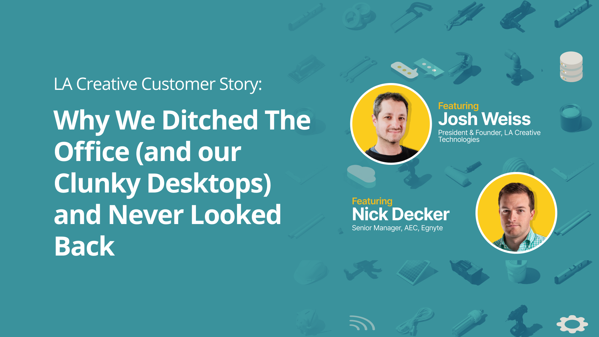 The move to a hybrid working environment was particularly disruptive to the AEC industry as the lines between "in the office" and "out of the office" became blurred. While many firms struggled to make the switch, LA Creative was helping their clients make a smooth transition to this new way of working. Learn how one AEC firm made the switch from on-premise storage and dated desktops to Egnyte cloud accessed on laptops anywhere in the world.