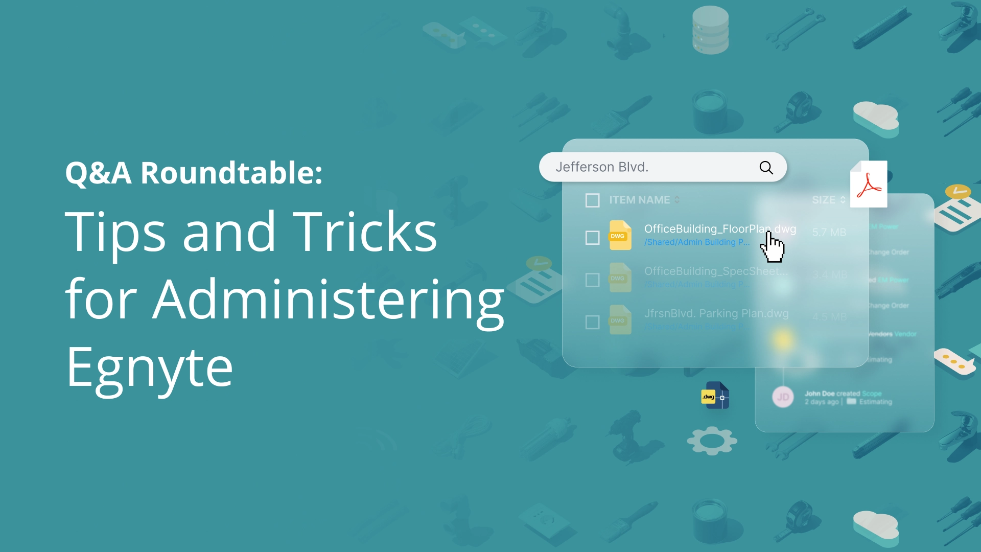 Margins are tight in construction. You can’t afford to have your team spending their time navigating project information or administering documents. Join our partner DADO, and Fisk Electric for a conversation on how they work together with Egnyte to ensure documentation control is done properly.