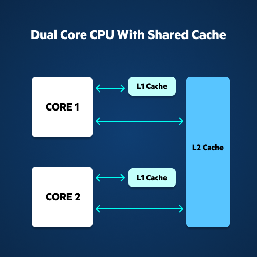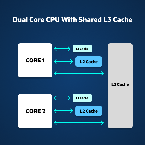 In a multi-core configuration, each core can have a dedicated L1 and L2 cache and share L3 cache. Usually, L3 cache serves L1 and L2 cache at the same time. This allows L3 cache to facilitate and expedite data sharing and inter-core communication.