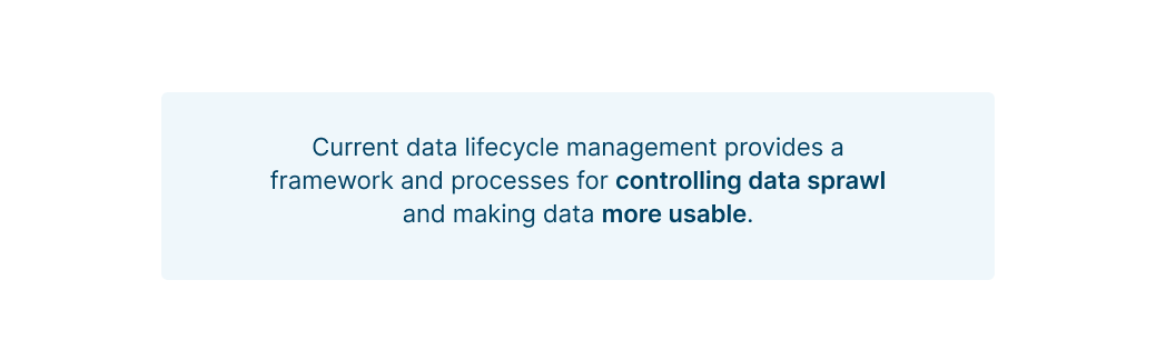 Each of these should be top of mind when moving through the stages of data lifecycle management. The ultimate goal of the data lifecycle stages is to extract the maximum value from data by creating and maintaining quality data and implementing processes to make it easily accessible while protecting it.