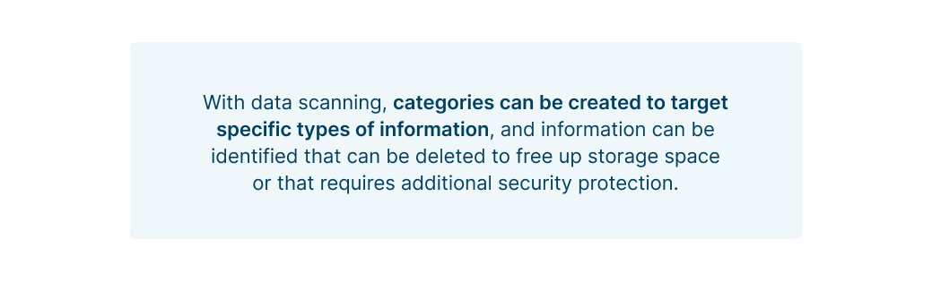 In some cases, this information is needed for day-to-day operations. In others, it can represent a data breach vulnerability. Data scanning is important for all organizations to support ready access to information and to protect against potential data loss.