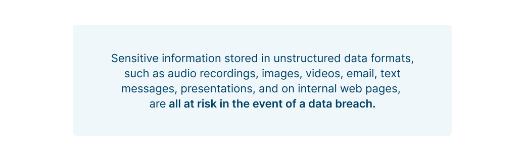 The sensitive information in these documents and files creates vulnerabilities for organizations from internal and external threats. Unsecured sensitive data risks include: