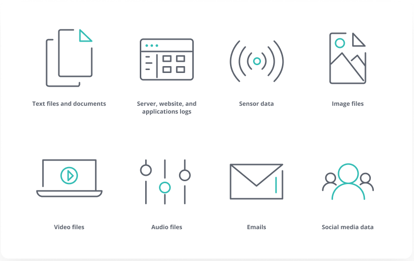 An umbrella for all data that is not structured, unstructured data includes a vast array of file types that are generated by both people and machines.