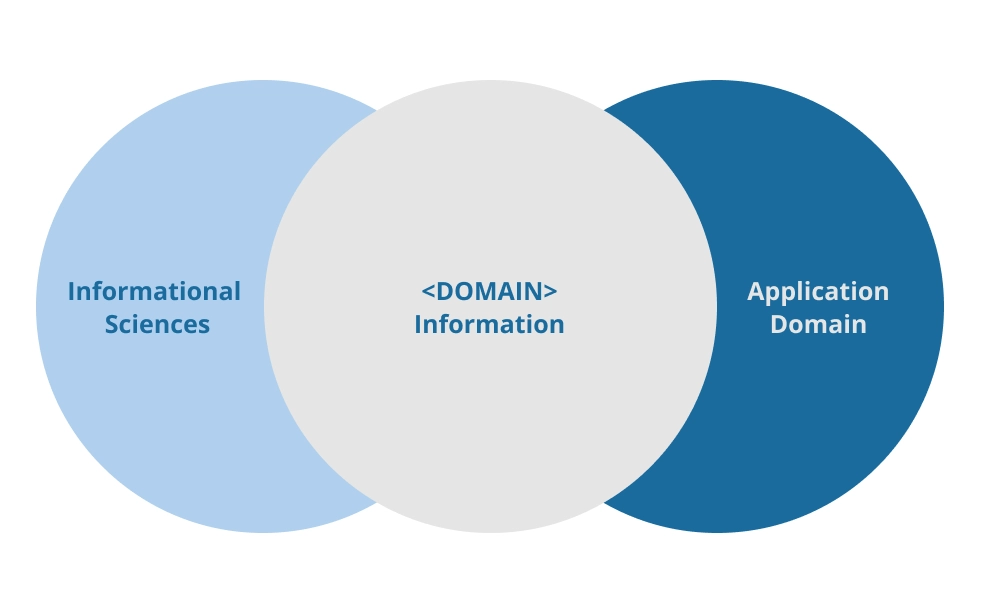The field of informatics can be thought of as the overlap of informational sciences (e.g., information science, computer science, cognitive science, organizational science) and an application domain (e.g., health, clinical, nursing, biology, public health, life sciences). An example of this is biomedical informatics, which applies the principles of the natural sciences, especially biology and biochemistry, to medicine and healthcare using a variety of technologies.